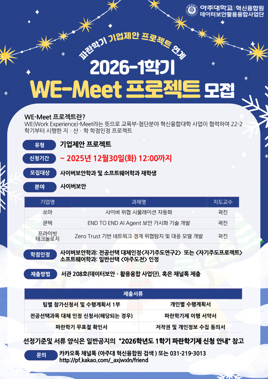 학사 ⭐2026-1학기 WE-Meet 프로젝트 (파란학기 기업제안) 신청 안내